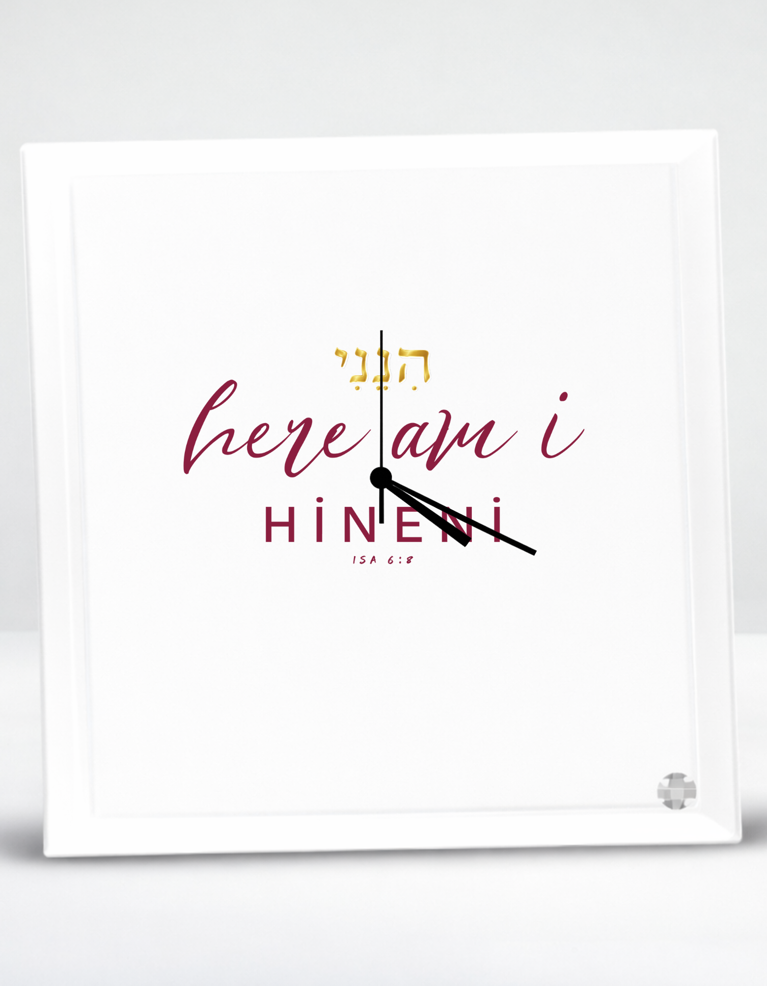 ISA 6:8 "HINENI - Here I am" faith inspired Glass Clock for believing women of God.