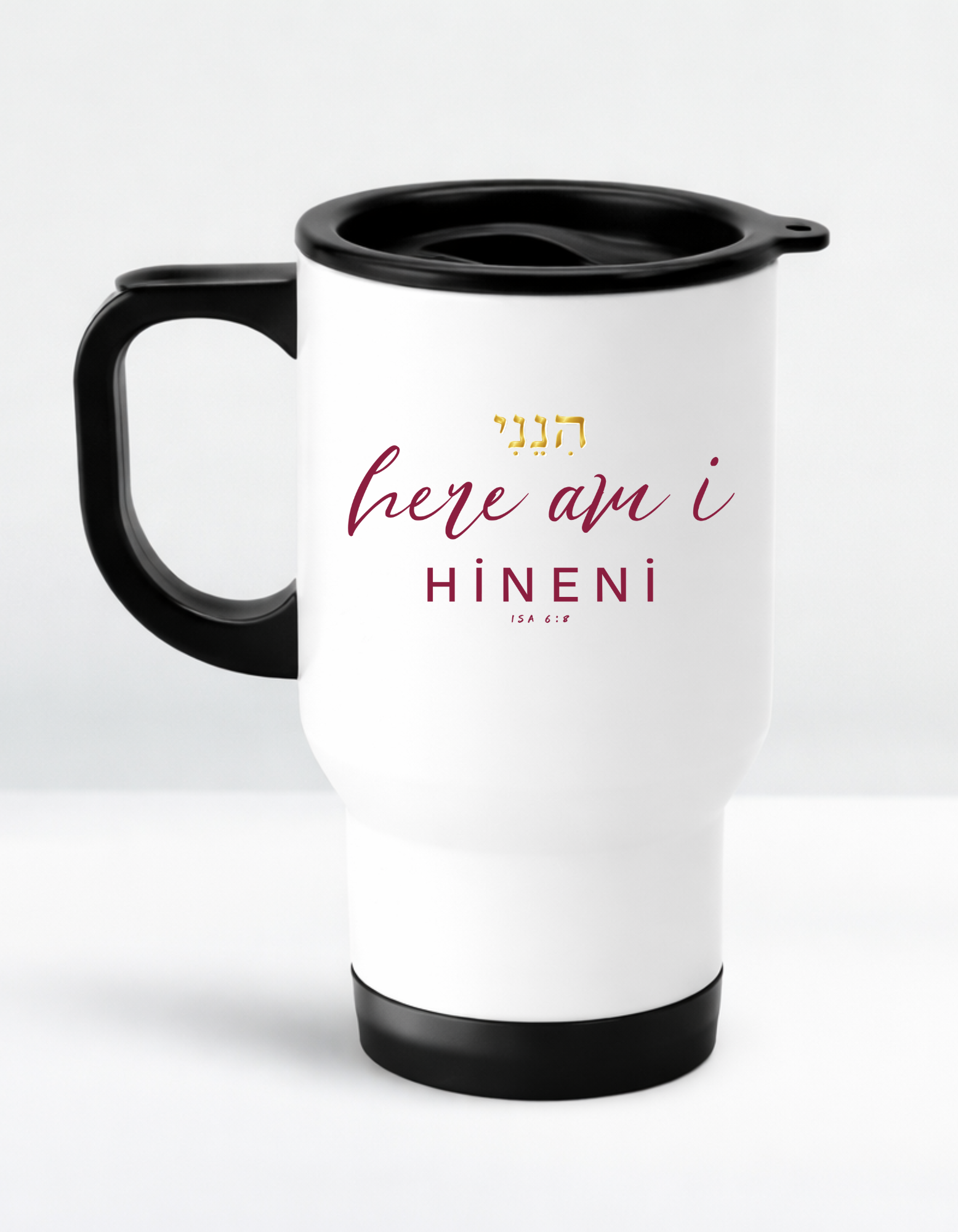 ISA 6:8 “HINENI – Here I Am” Faith-Inspired Stainless Steel Travel Mug for Christian believers